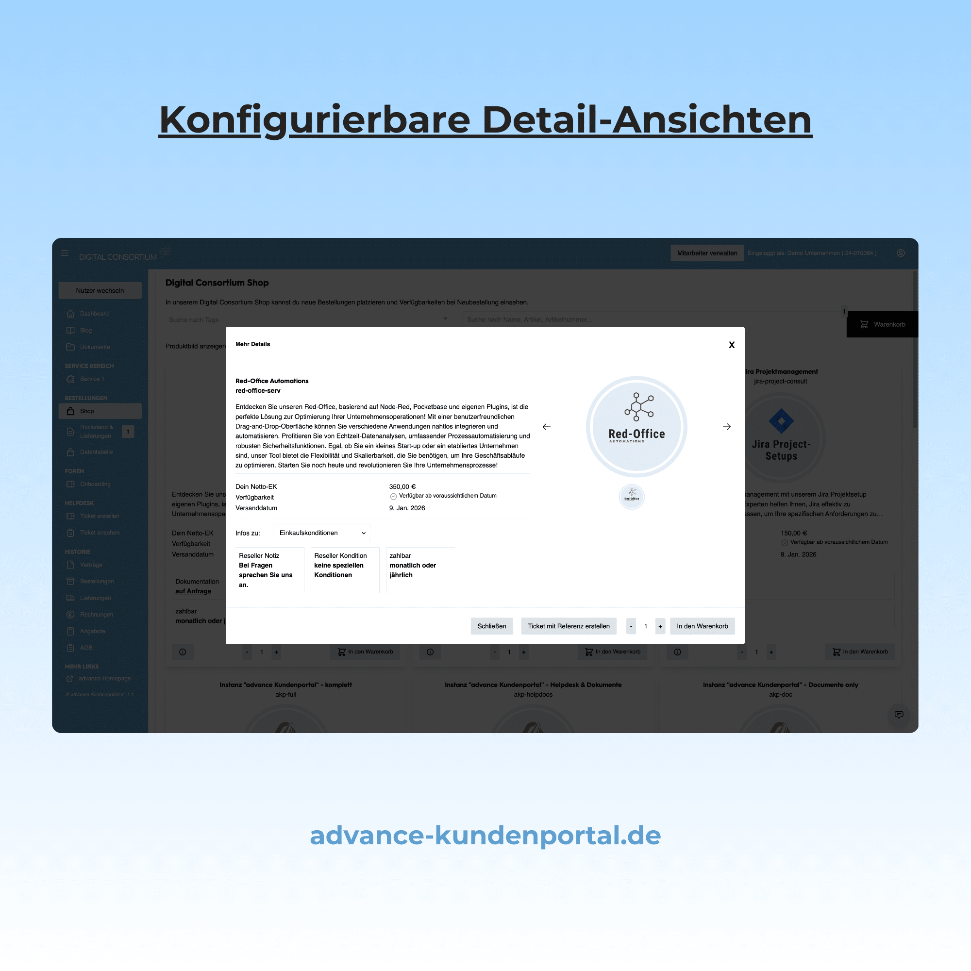 - Kombinieren Sie Vertrieb & Service in einem Erlebnis: Ihr Shop, Helpdesk, Kundenportal & Dokumentencenter greifen nahtlos ineinander – für schlanke Prozesse und ein professionelles Kundenerlebnis.