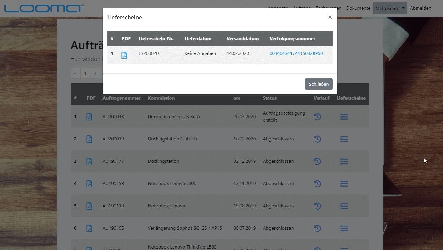 Lieferscheine: Sobald du einen Lieferschein in weclapp erstellt hast, können deine Kunden auf diesen zugreifen.